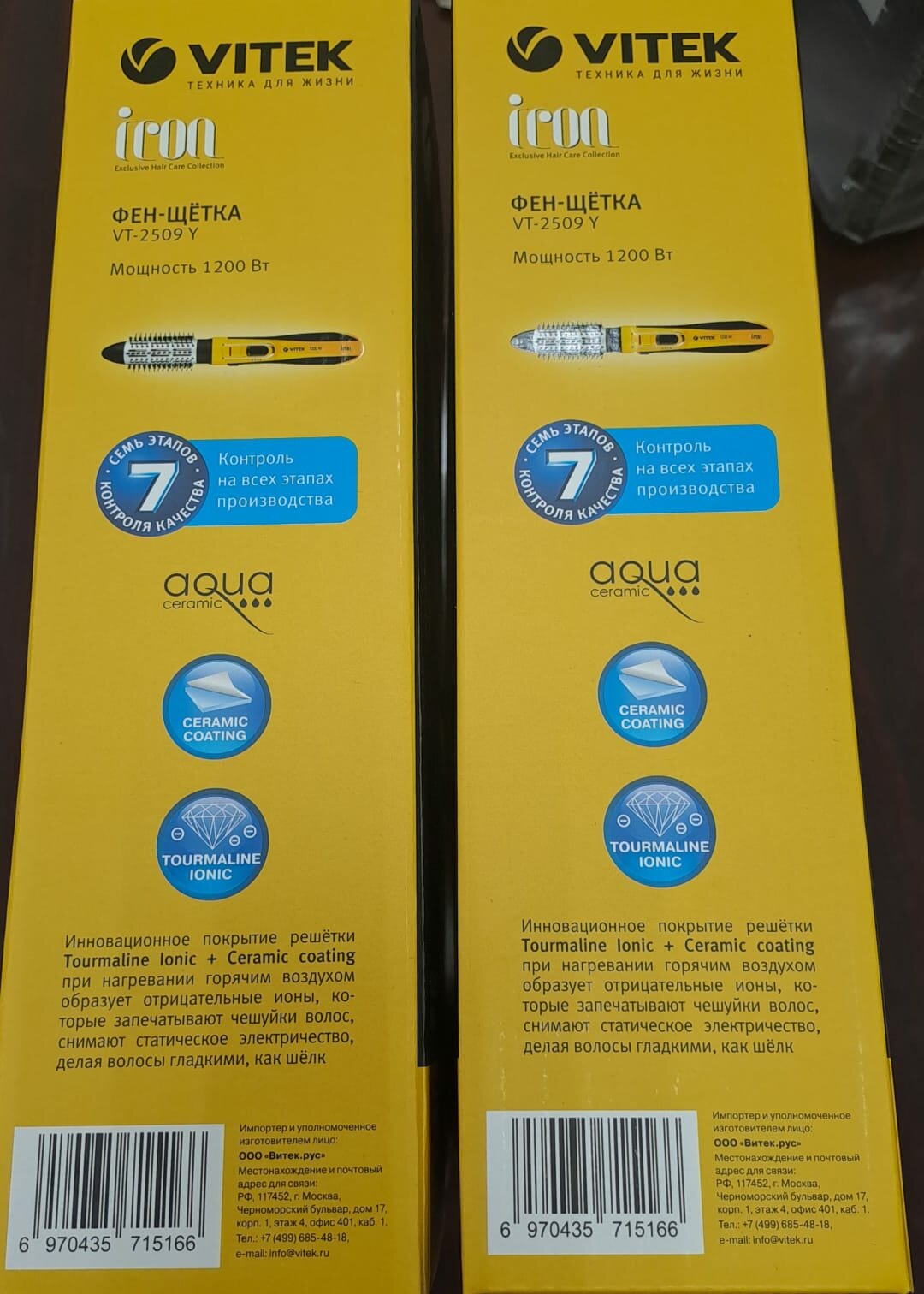 Фен-щетка Vitek VT-2509 Y желтый/черный, желтый/черный, 1200 Вт, диаметр - 30 мм, 40 мм, турмалиновая ионизация, насадок - 4 шт, шнур - 1.8 м интересное: