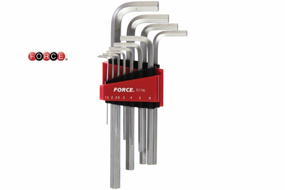 Набор ключей шестигранных 1.5-12мм удлиненных 11 предметов FORCE FORCE 5116L