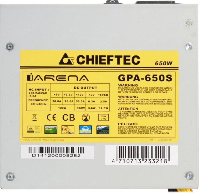 Chieftec 650W OEM [GPA-650S] {ATX-12V V.2.3 PSU with 12 cm fan, Active PFC, 230V only}