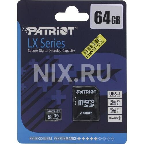 Купить Карта памяти Patriot LX microSDXC 64 ГБ PSF64GMCSDXC10