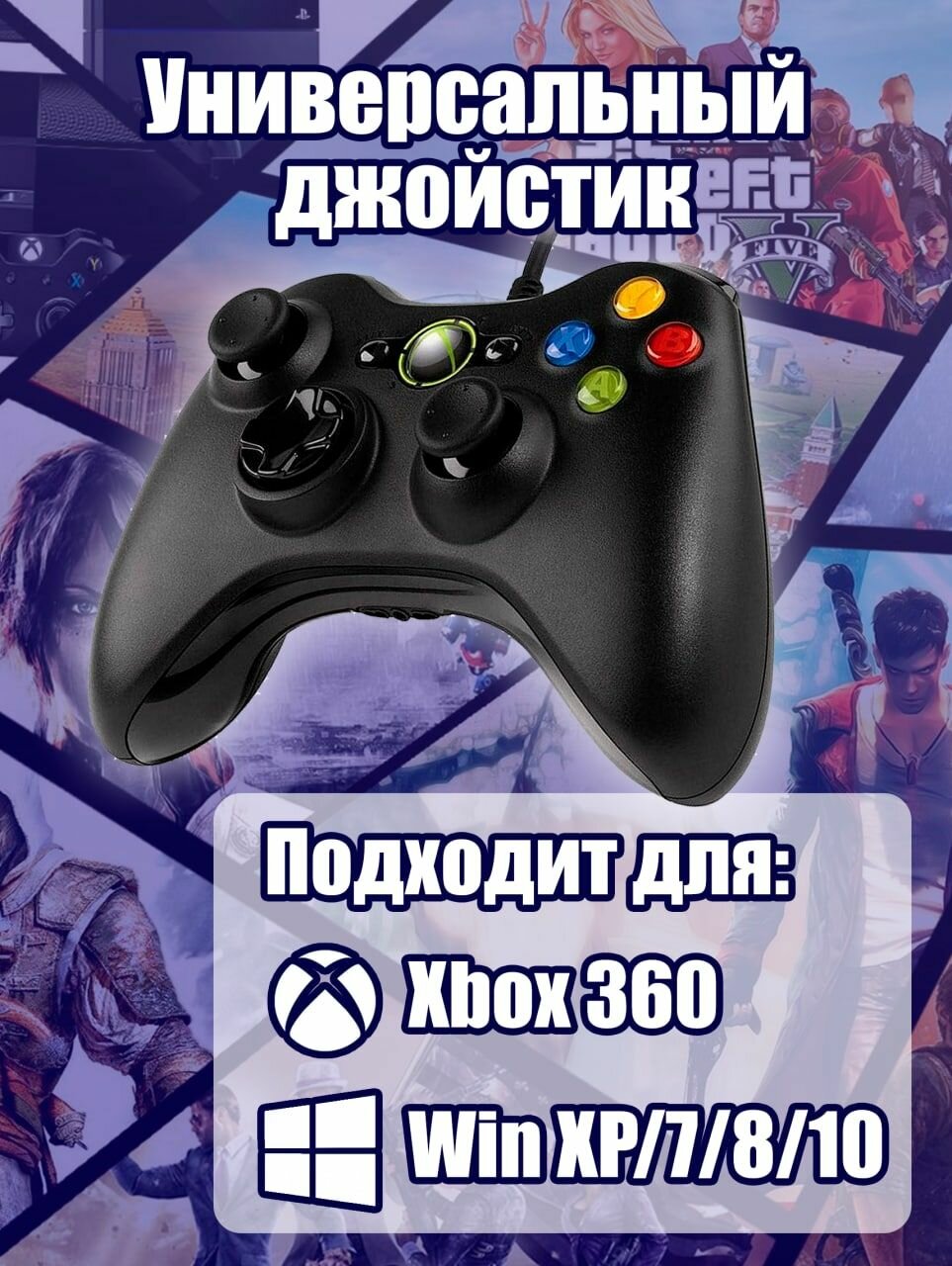 Геймпад (геймпад) проводной для Xbox 360 и PC, черный