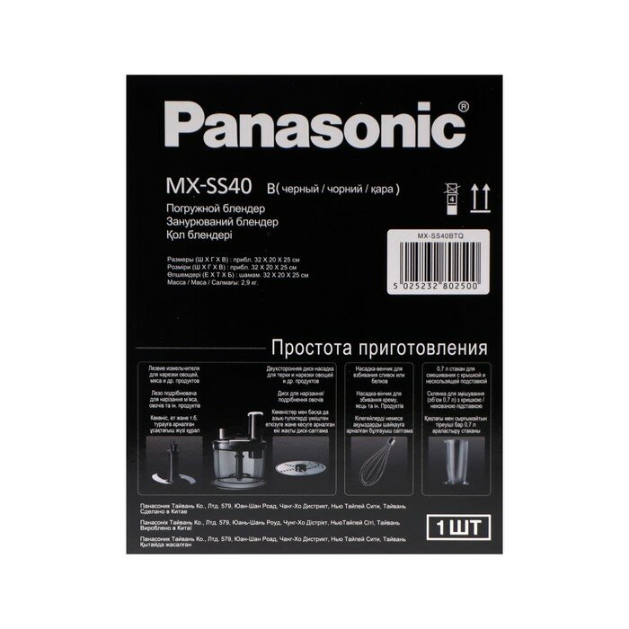 Блендер Panasonic погружной MX-SS40BTQ Черный