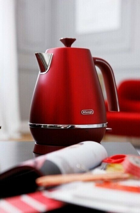 Чайник электрический DeLonghi KBI2001.R, 2000Вт, красный и серебристый