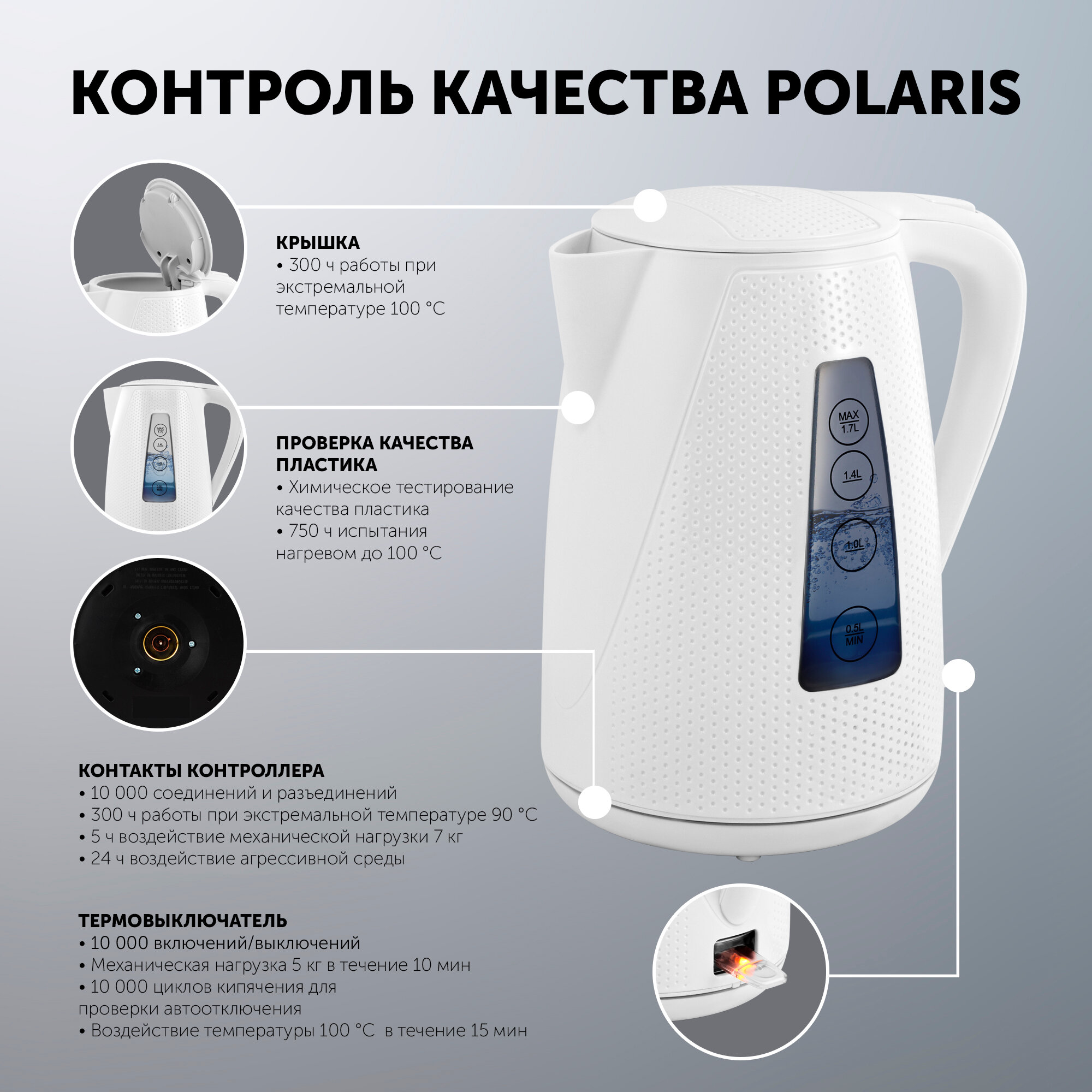 Чайник электрический Polaris Pwk-1794c белый 1,7 л 2200 Вт пластик .