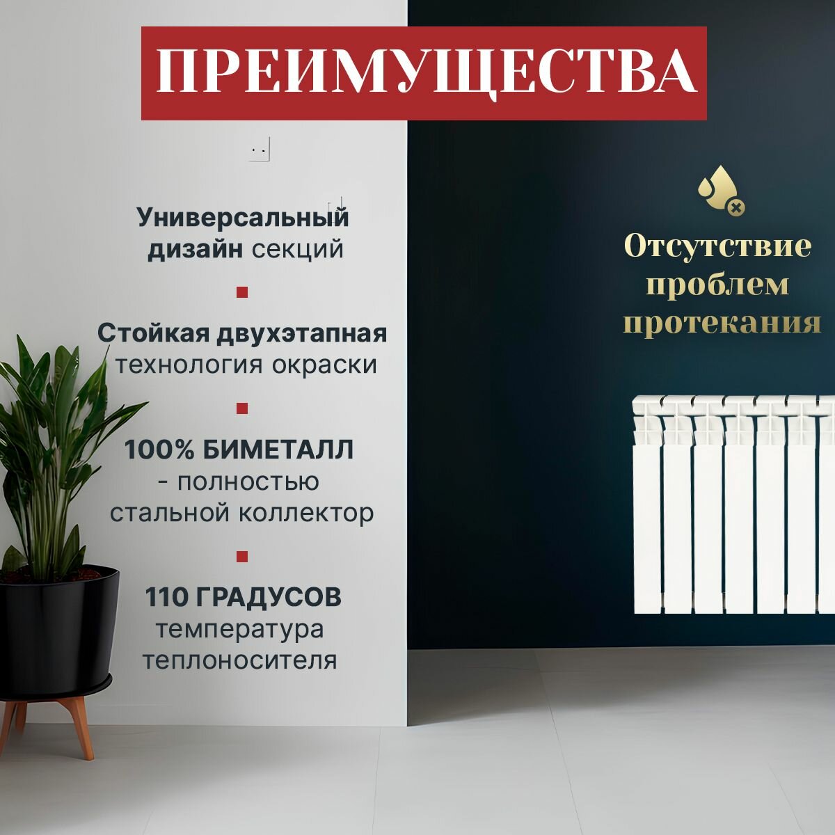Радиатор секционный биметаллический Profi BM 350 6 секций параметры 418х480х80 боковое подключение Сантехническая нить 20 м