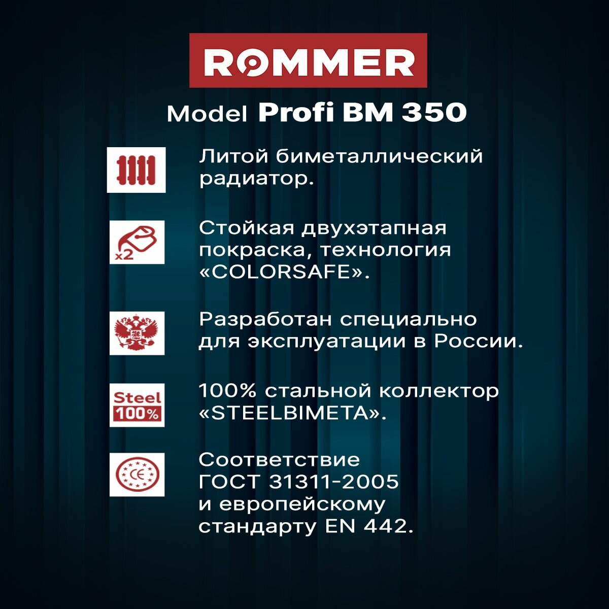 ROMMER Радиатор отопления биметаллические Profi BM 350, 12 секций