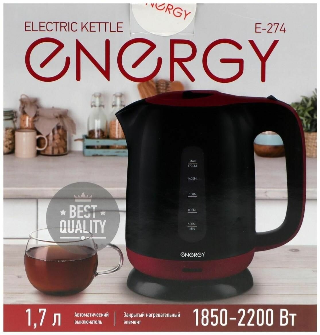 Energy E-274 чайник электрический дисковый, 1.7л, 2200Вт, пластиковый, шкала уровня воды