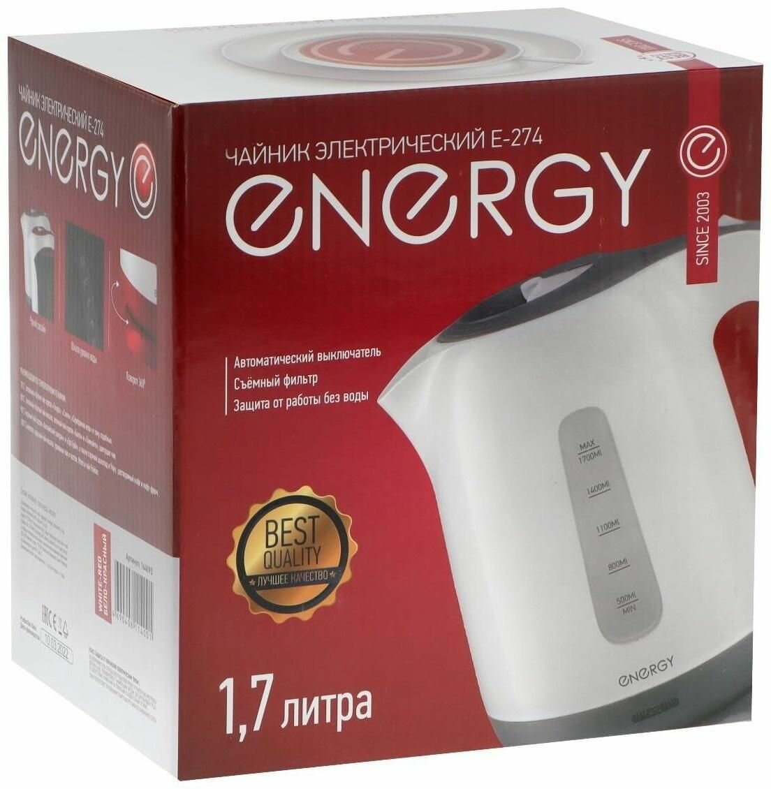 Чайник электрический Energy E-274 1,7 л, пластик, бело-красный