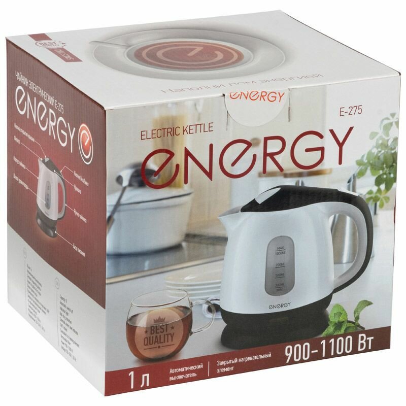 Energy Чайник электрический ENERGY E-275, пластик, 1 л, 1100 Вт, бело-чёрный
