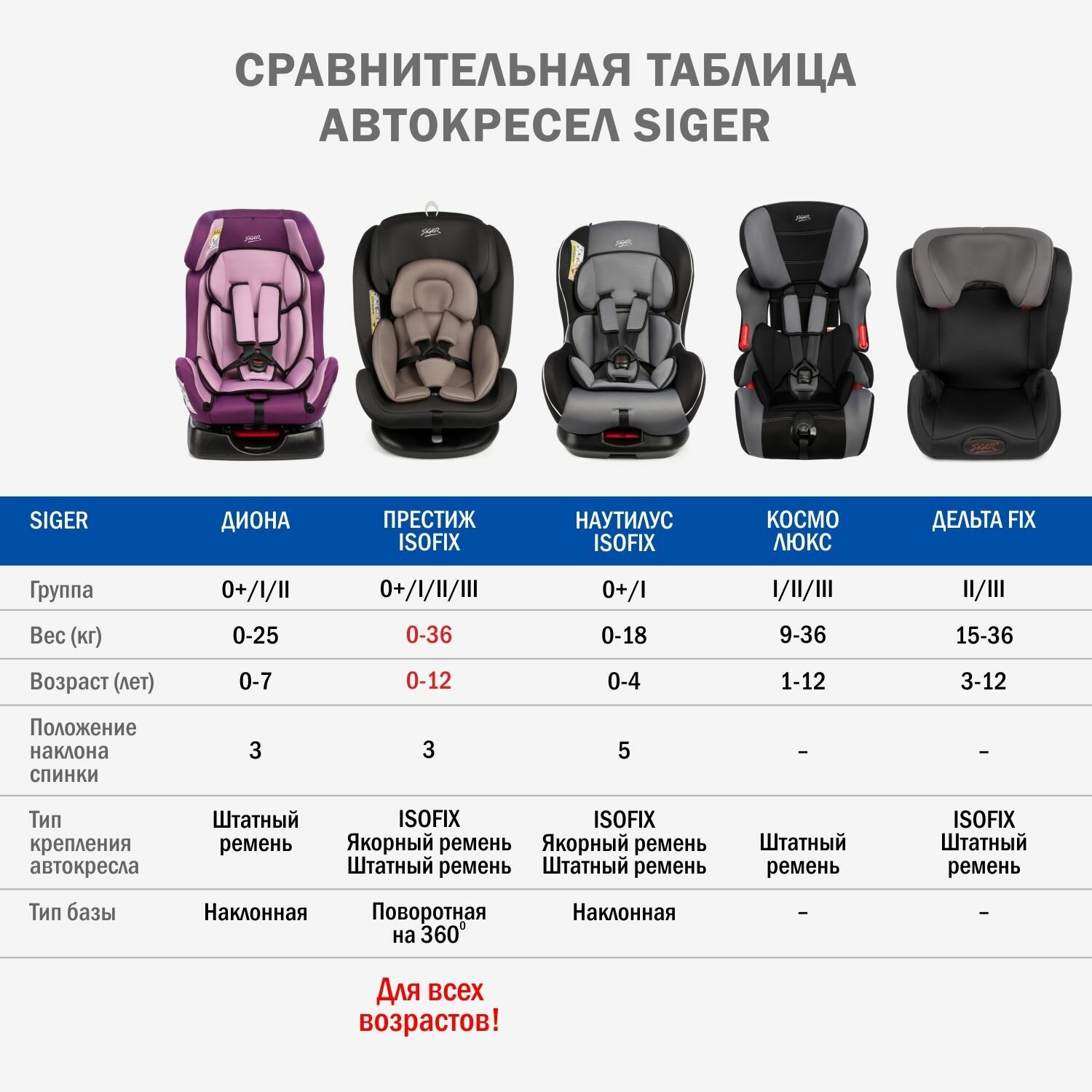Детское автокресло SIGER "Диона" фиолетовый, 0-7 лет, 0-25 кг