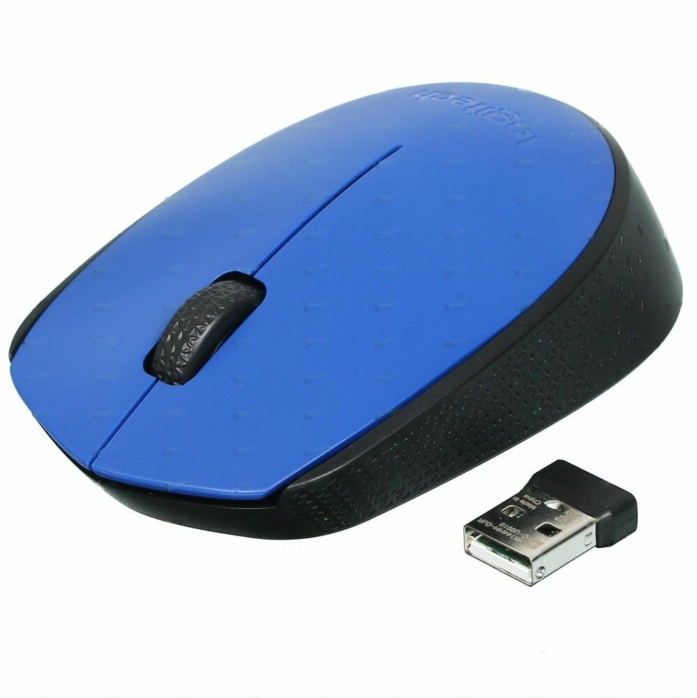 Мышь Logitech M170, оптическая, беспроводная, USB, синий и черный [910-004647]
