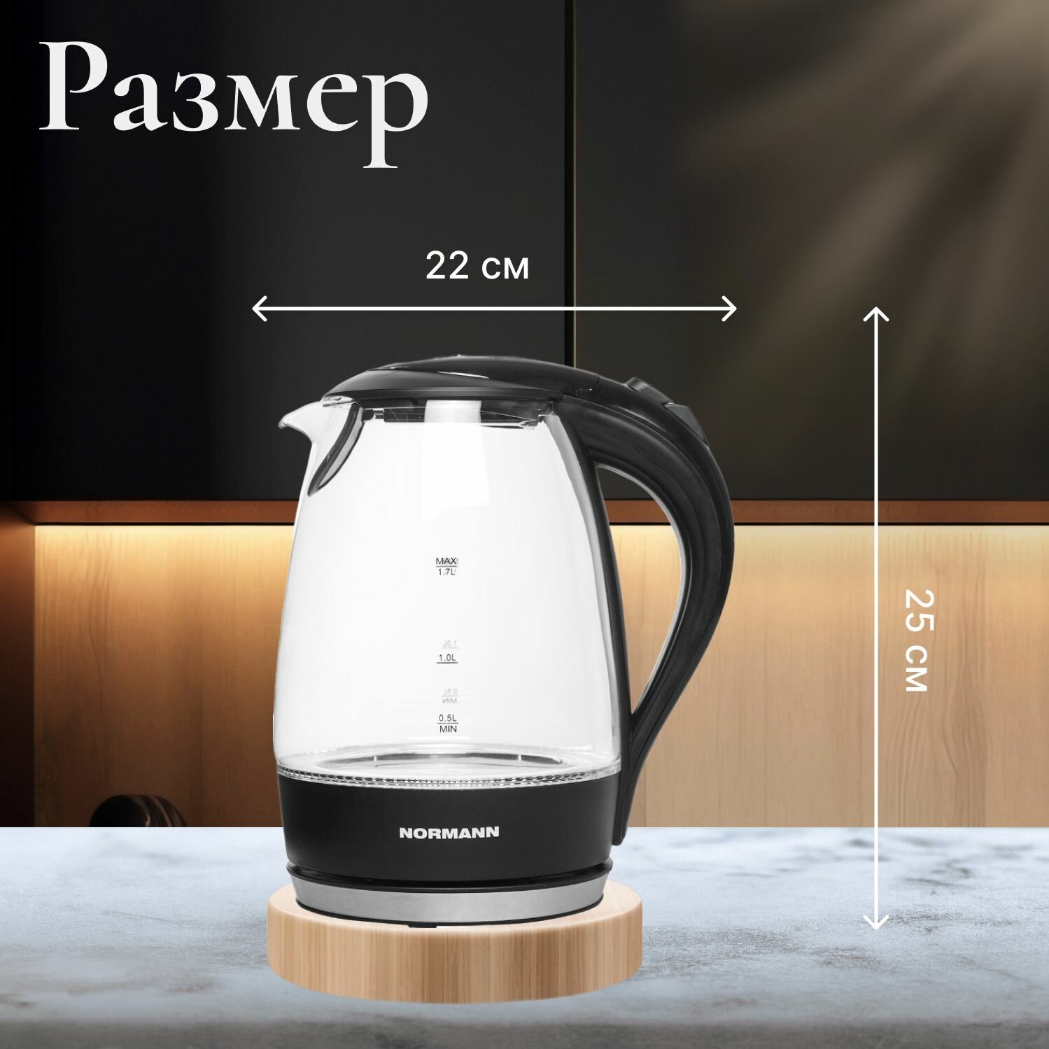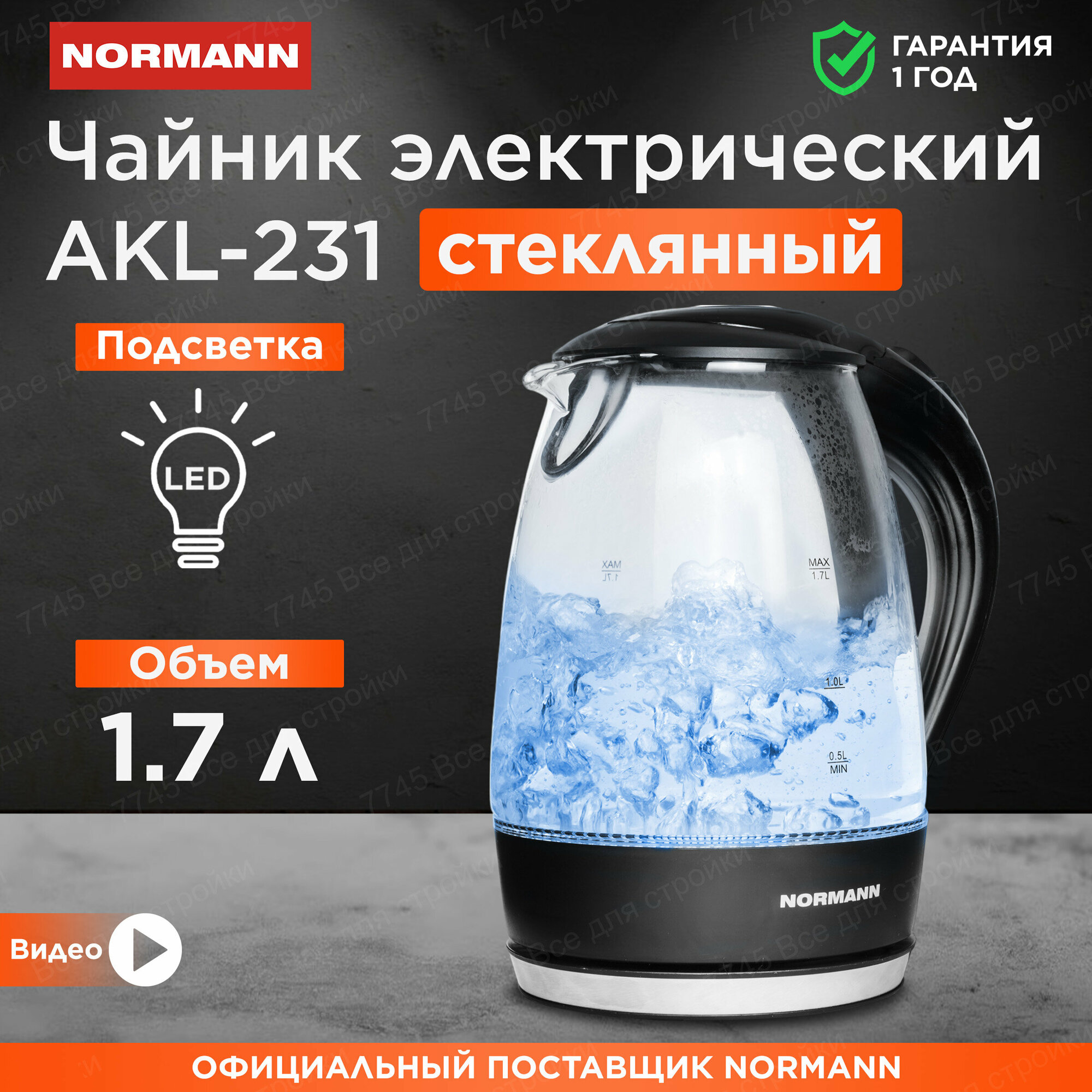 Чайник электрический AKL-231 NORMANN (2200 Вт, 1,7 л, стекло, подсветка) интересное: