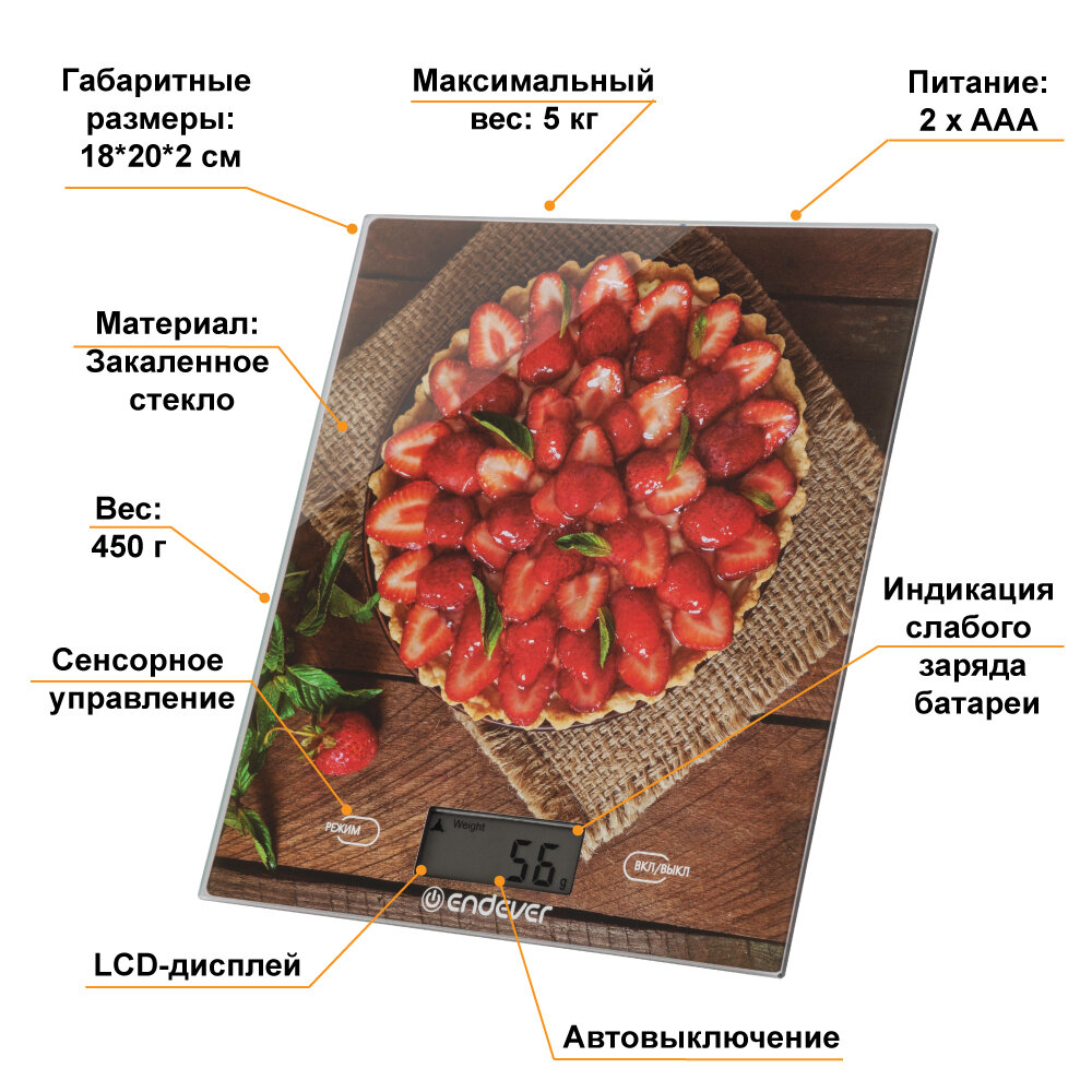 Весы кухонные электронные Endever Skyline KS-522 макс.вес:5кг рисунок/клубника
