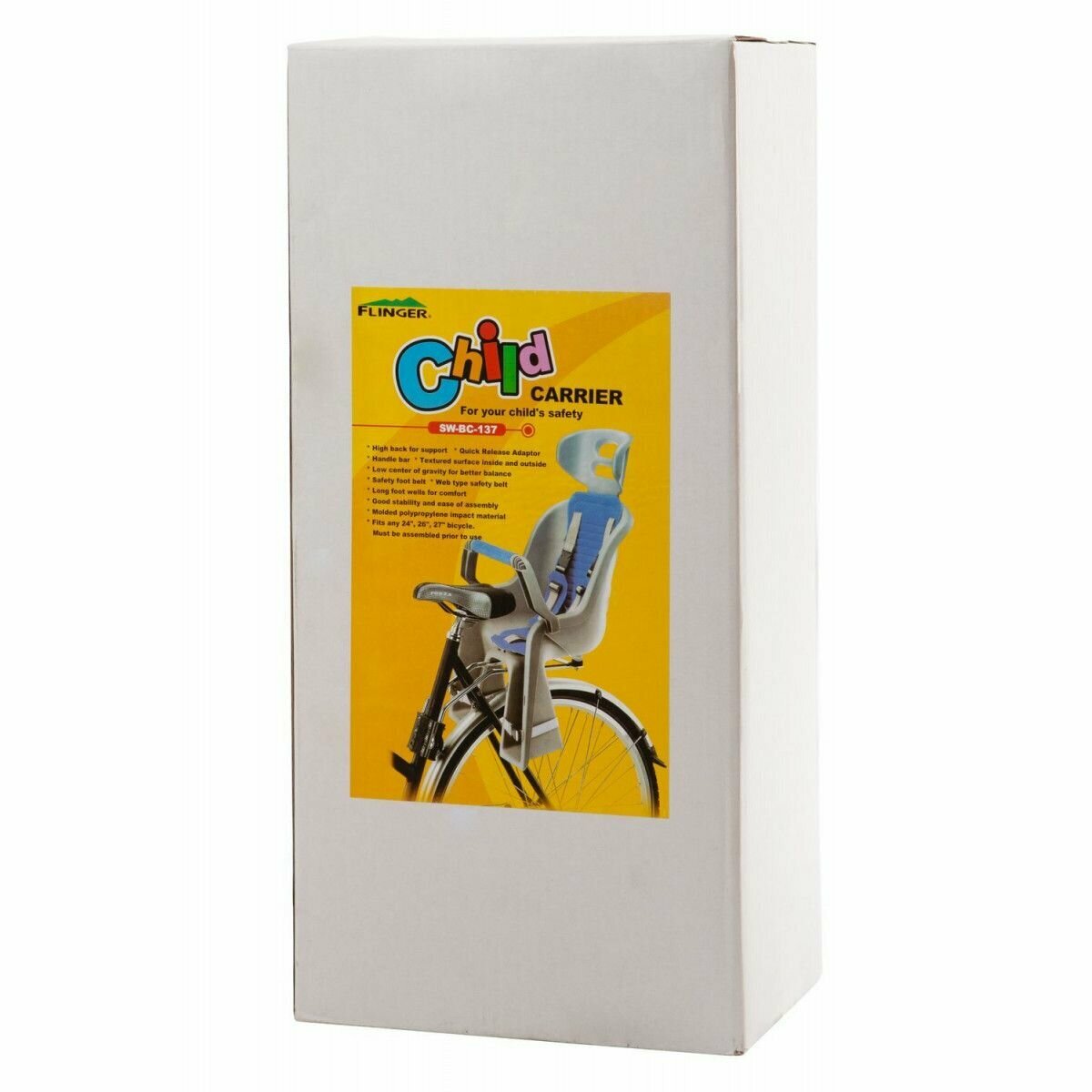Детское велосипедное кресло заднее Sunnywheel в цветной коробке, модель SW-BC-137,серая накладка