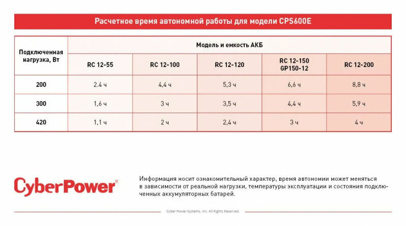 Ниже Вы можете прочитать отзывы на Cyberpower Cps600e UPS Cyberpower CPS 600 E 420 VA 12 V ., ознакомится с подробными характеристиками, посмотреть интересные обзоры и фотографии на Cyberpower Cps600e UPS Cyberpower CPS 600 E 420 VA 12 V ..