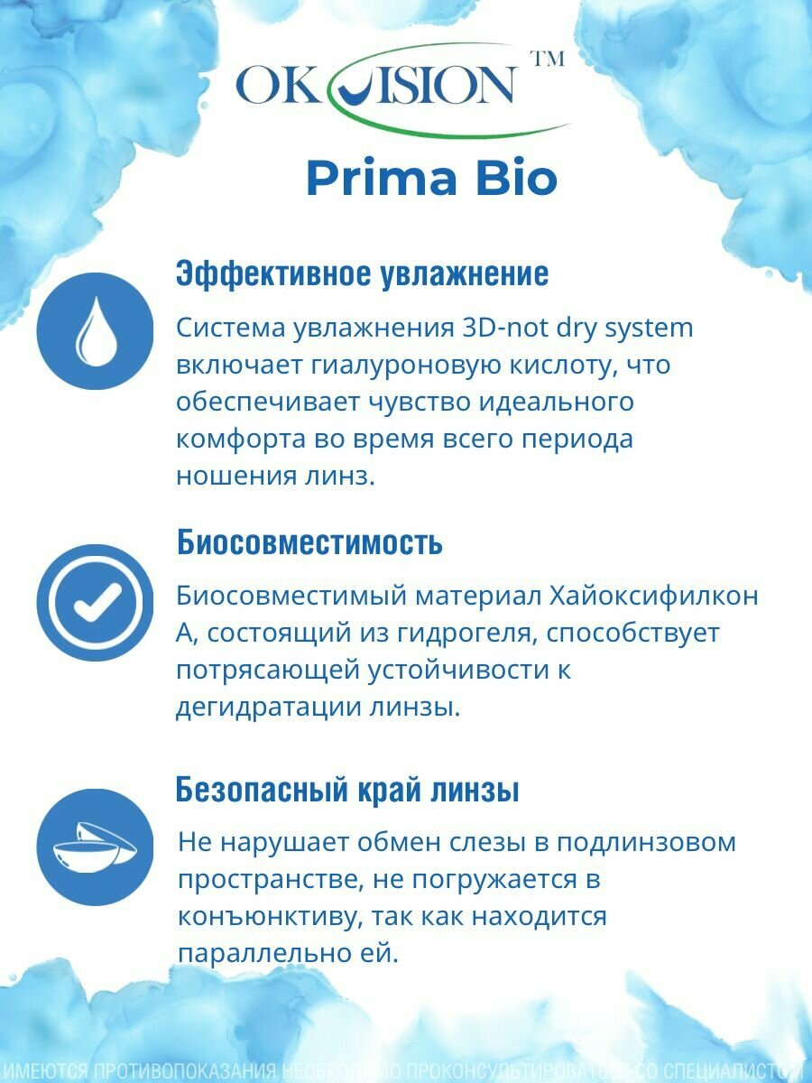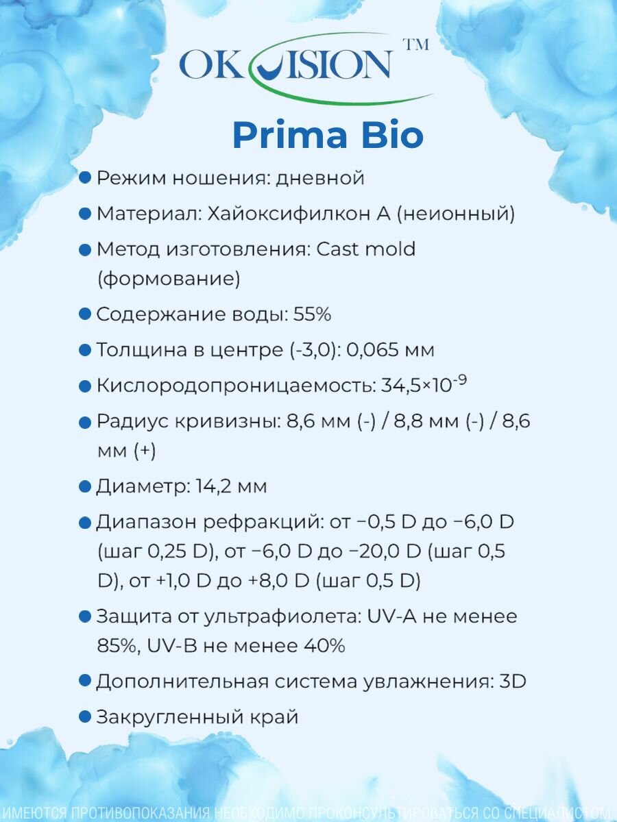 OkVision контактные линзы Prima Bio 8,6 , -3.00 / 8,6 / 1 месяц, (6 линз)