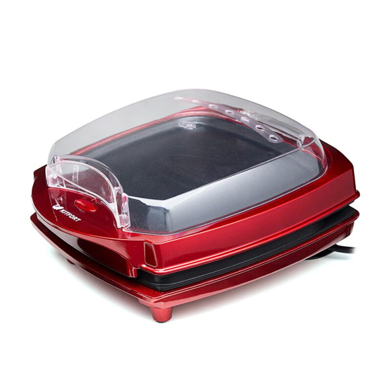 Электрогриль KITFORT КТ-1610, 1100 Вт, фиксированные панели, отсек для разогрева, красный