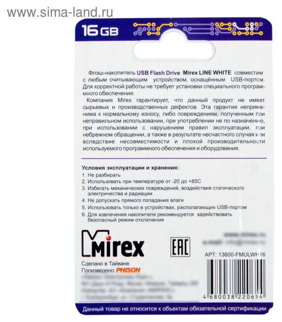 Ниже Вы можете прочитать отзывы на USB Флеш-накопитель MIREX LINE WHITE 16GB, ознакомится с подробными характеристиками, посмотреть интересные обзоры и фотографии на USB Флеш-накопитель MIREX LINE WHITE 16GB.