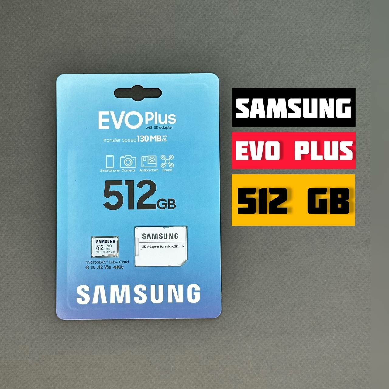 Карта памяти Samsung EVO Plus microSDHC 512 ГБ A2, UHS Class 1 запись - 130 Мбайт/сек