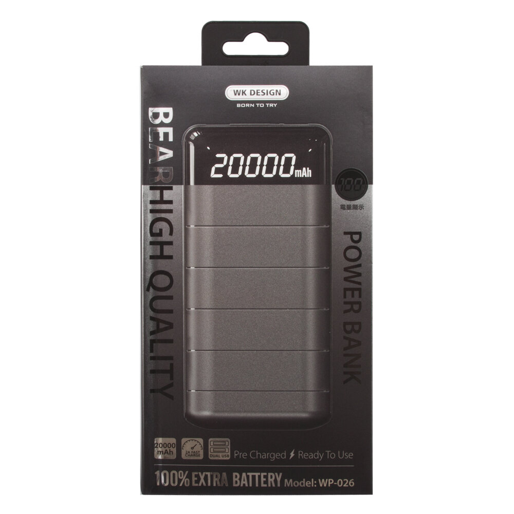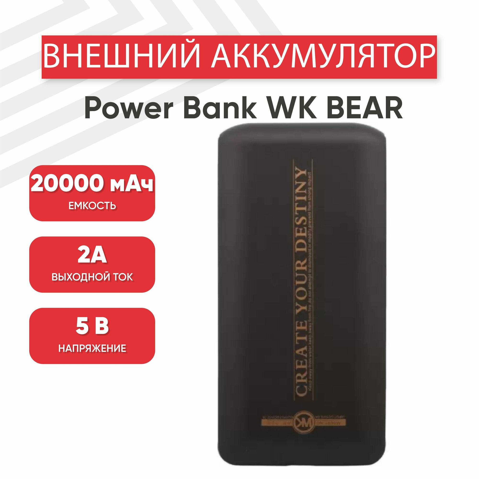 Купить Внешний аккумулятор (Повербанк (powerbank), аккумуляторная батарея ) WK Bear WP-026, 20000мАч, 2хUSB, 2А, Li-Ion, черный