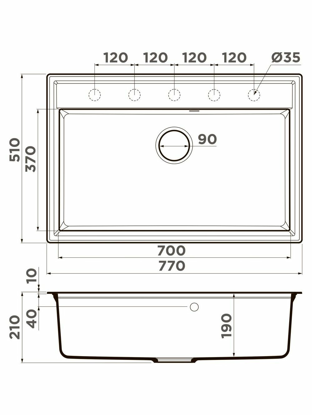 Кухонная мойка OMOIKIRI Daisen 77-DC (770 x 510 мм), врезная, Artgranit, темный шоколад Omoikiri 4993629