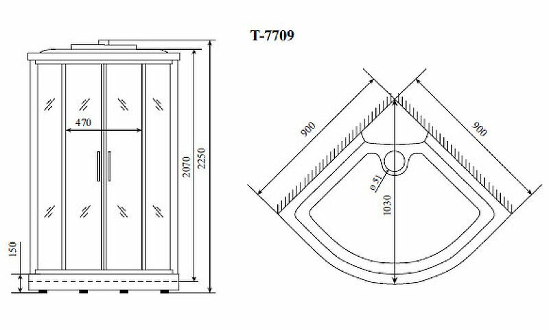 | Форма поддона | четверть круга |