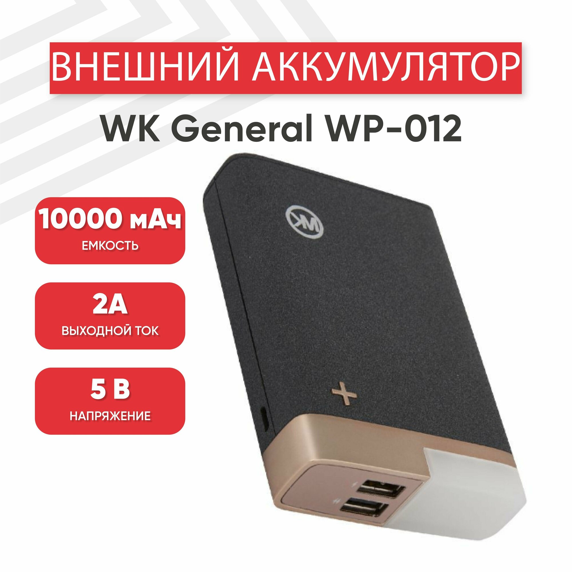 Купить Внешний аккумулятор (Повербанк (powerbank), аккумуляторная батарея) WK General WP-012, 10000мАч, 2хUSB, 2А, Li-Ion, черный