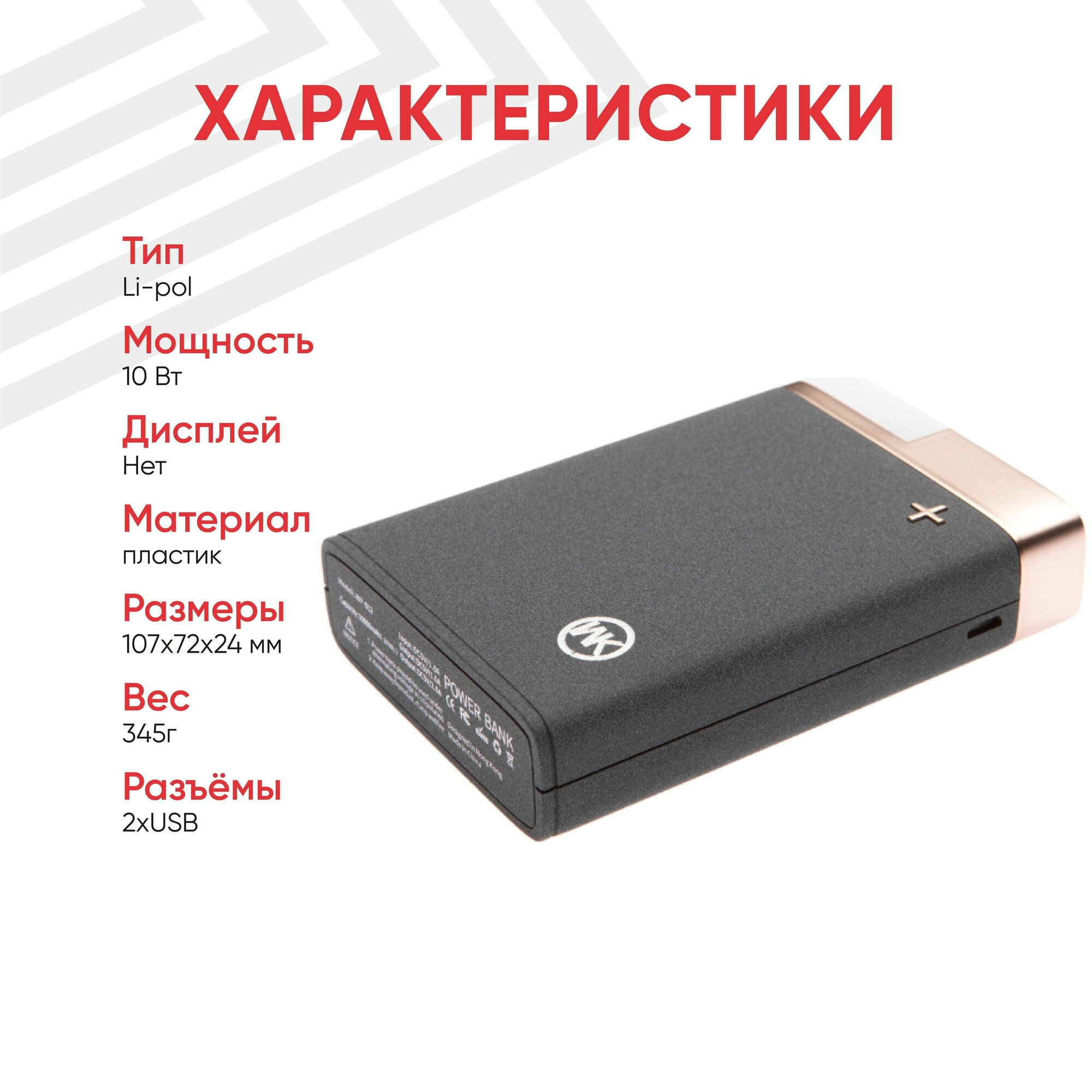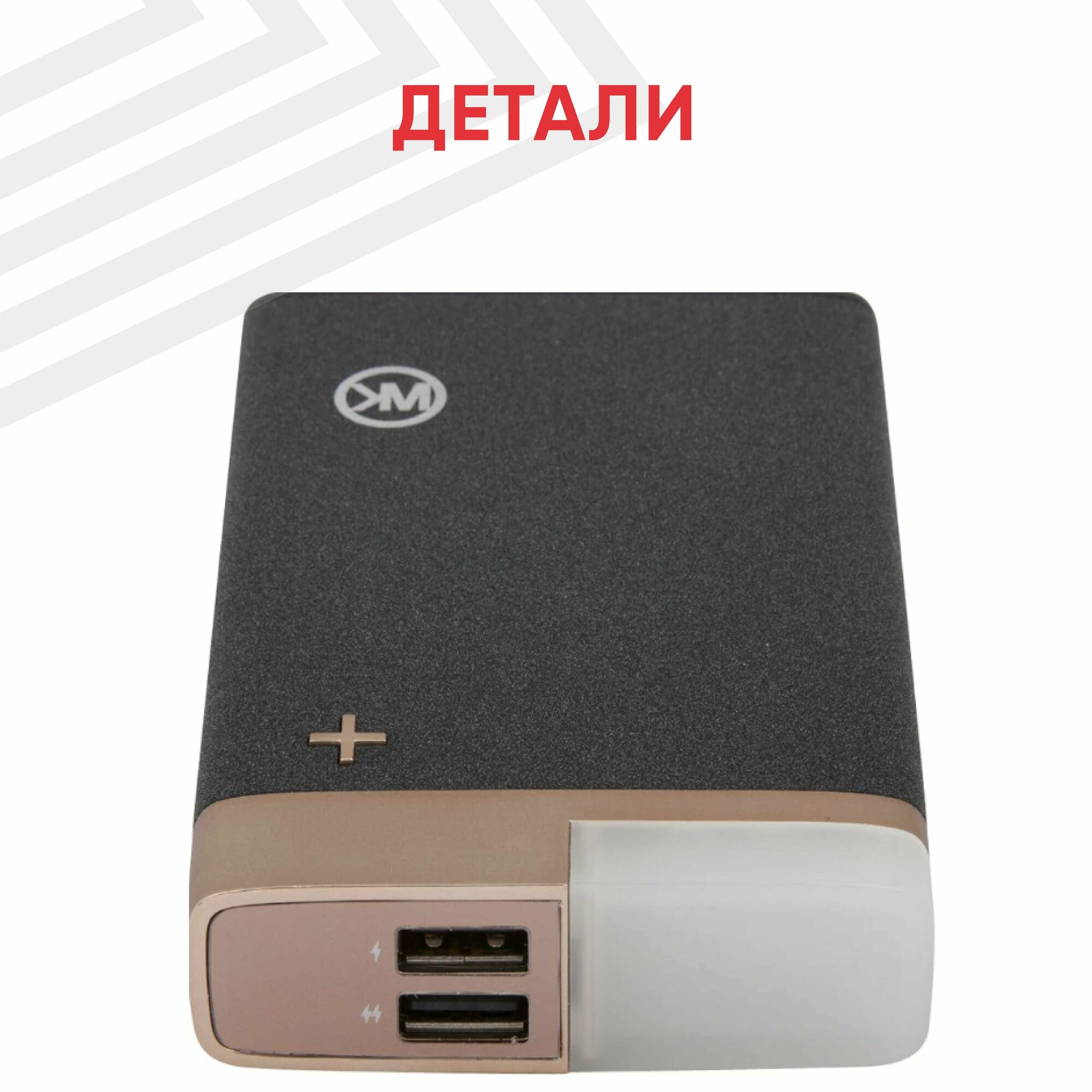 Внешний аккумулятор (Повербанк (powerbank), аккумуляторная батарея) WK General WP-012, 10000мАч, 2хUSB, 2А, Li-Ion, черный интересное: