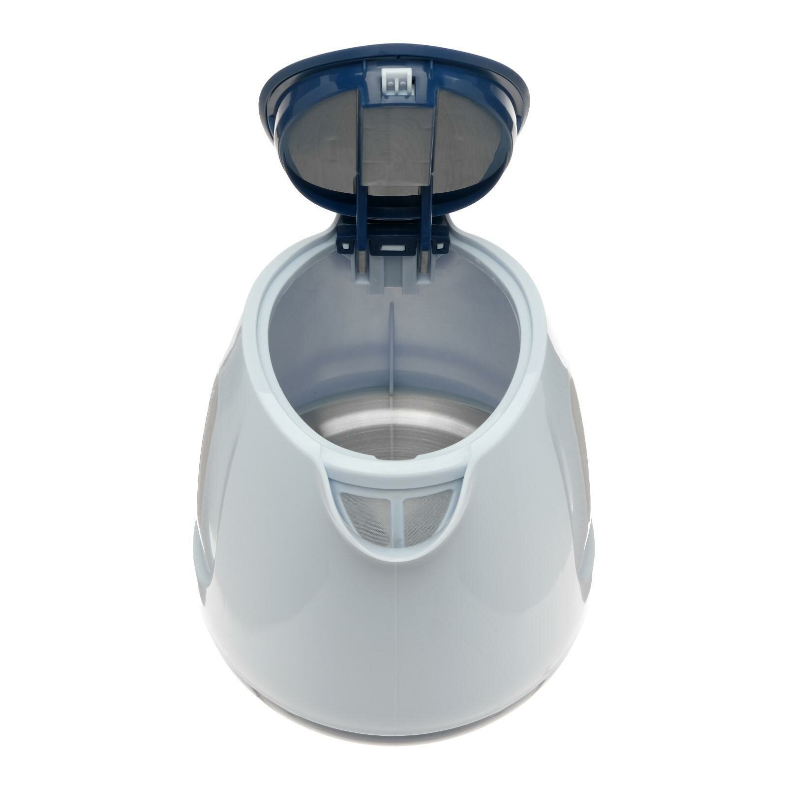 Чайник электрический E-234, пластик, 1 л, 1100 Вт, бело-синий