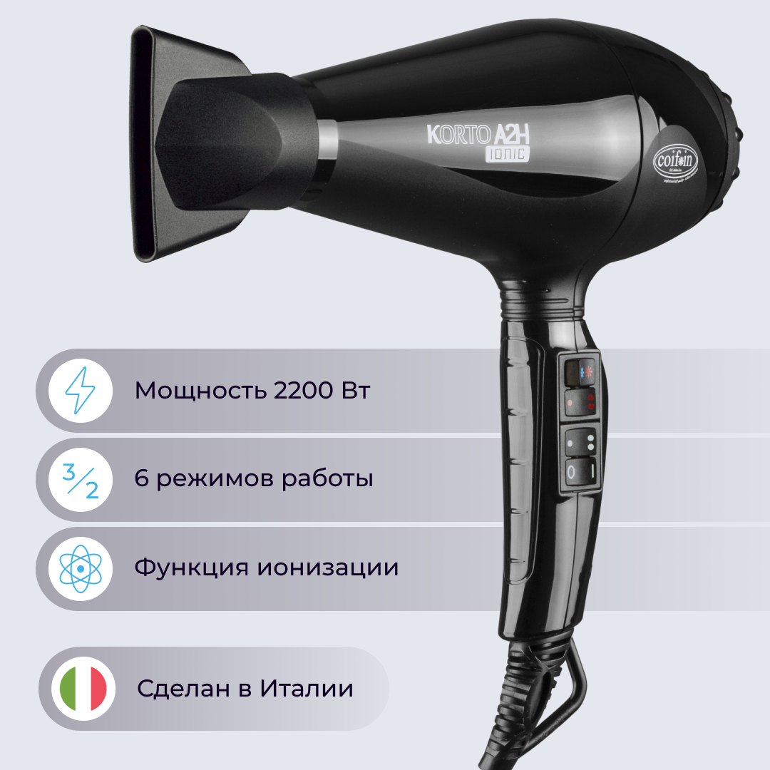 Фен профессиональный Coifin Korto КА2 H Ionic Black для волос, 2200W