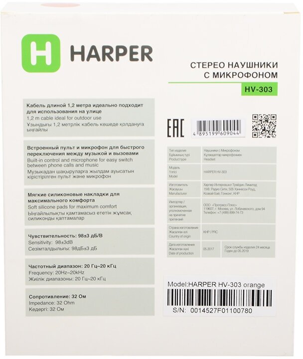 Наушники HARPER HV-303 orange интересное: