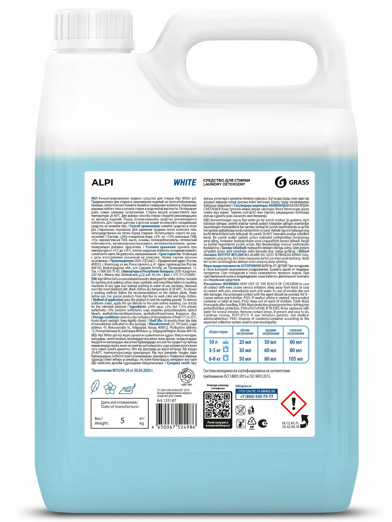 Гель для стирки GRASS ALPI для белых вещей, концентрат, 5 л