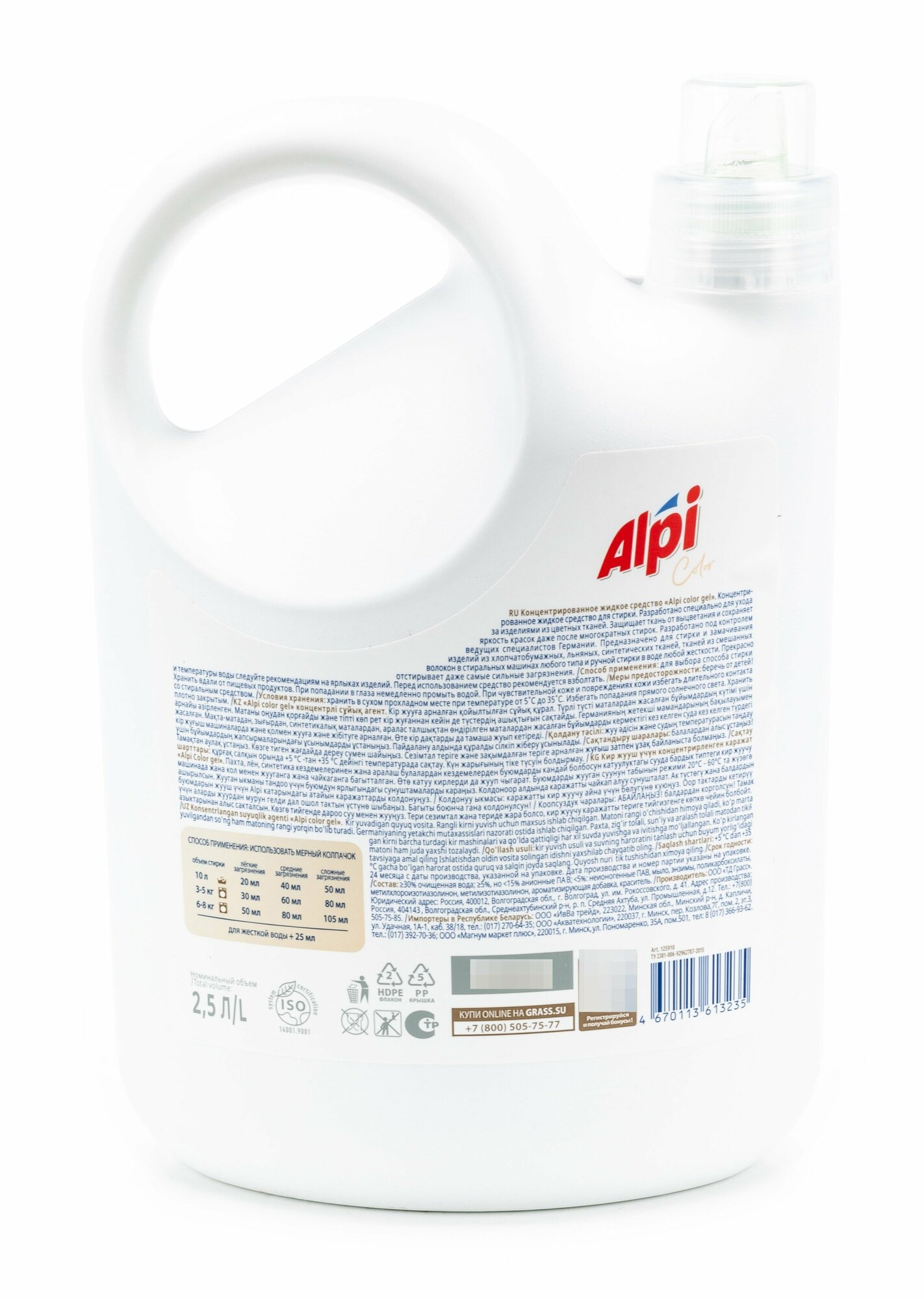 Гель для стирки цветных тканей Grass / Грасс Alpi жидкий концентрат гипоаллергенный без фосфатов в бутылке с флаконом 2.5л / средство для белья