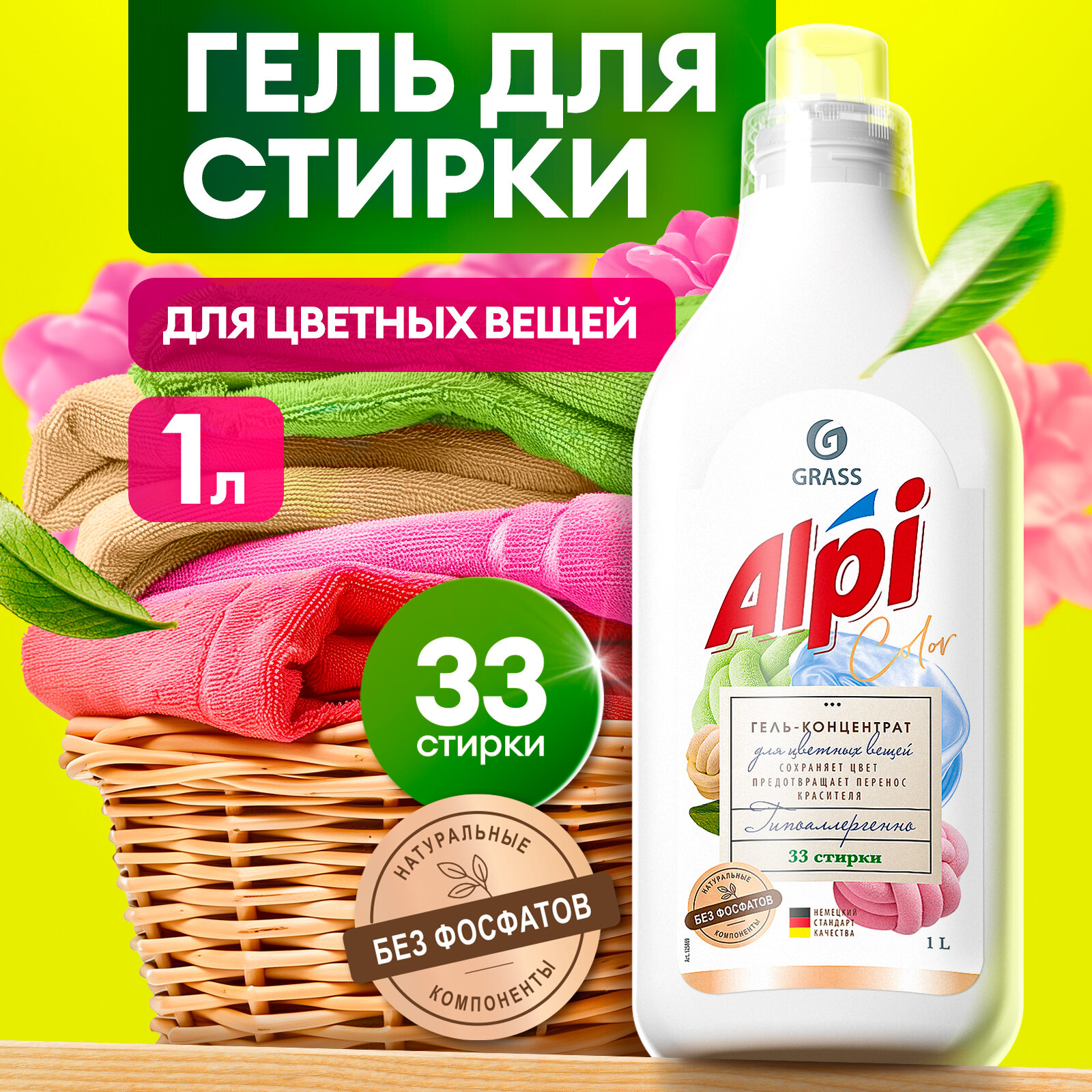 Гель для стирки Grass ALPI Color для цветного белья, концентрированный, 1 л