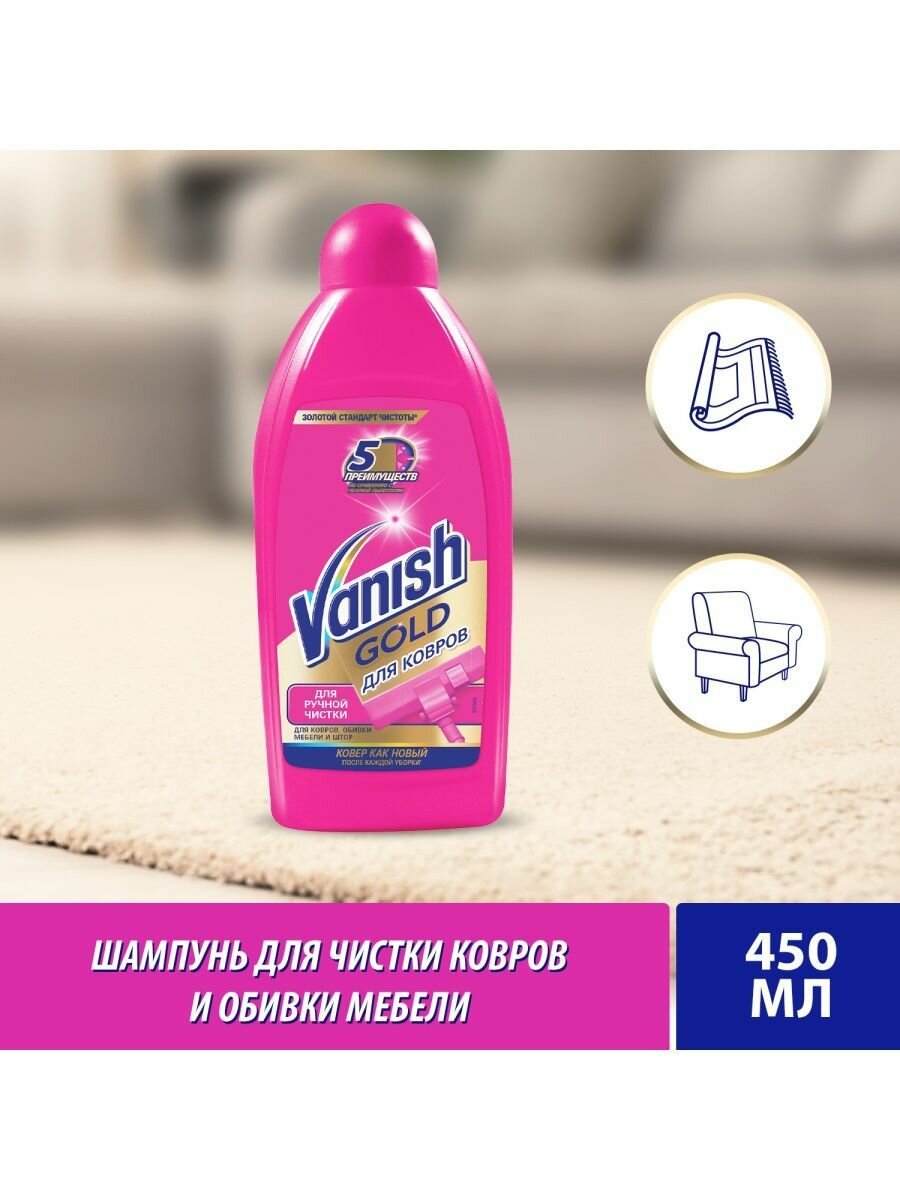 Антибактериальный шампунь для ручной чистки ковров Vanish Gold, 450 мл