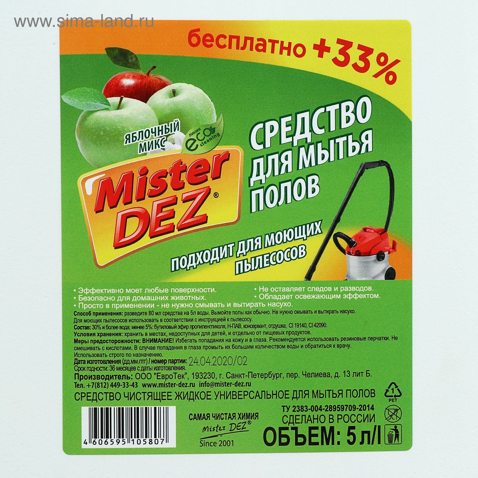 Mister DEZ Средство для мытья полов Mister Dez "Яблочный микс", 5 л