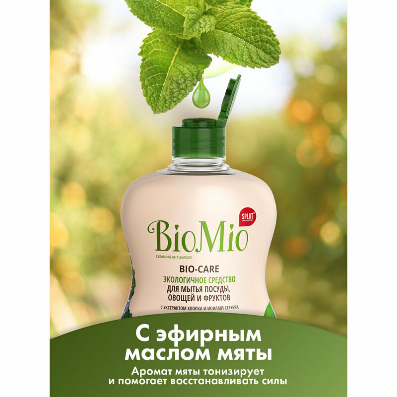 Средство для мытья посуды, овощей и фруктов BioMio Bio-Care с эфирным маслом мяты, гипоаллергенное, экологичное, 450 мл