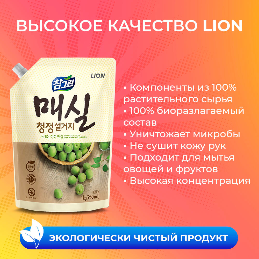 Lion Средство для мытья посуды, овощей и фруктов Chamgreen Японский абрикос, 960 мл