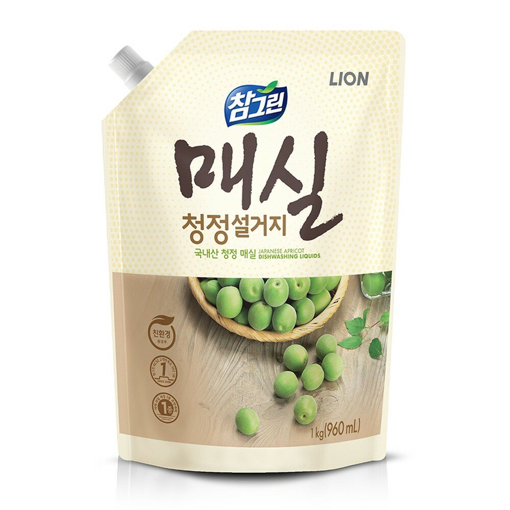 Lion Chamgreen Средство для мытья посуды, овощей и фруктов Японский абрикос 960 мл в мягкой упаковке