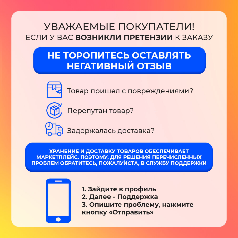 | Минусы: | Верните деньги за недоставленный товар |