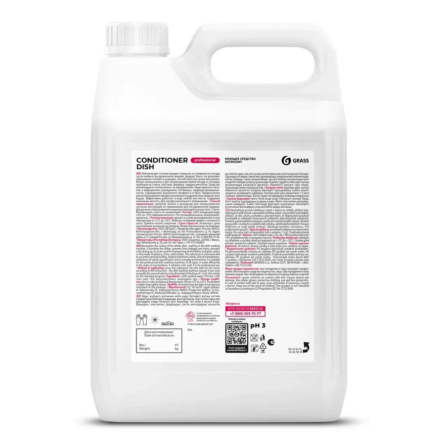 Купить Ополаскиватель для посудомоечных машин 5 кг GRASS CONDITIONER DISH, кислотное, концентрат, 92778, 216101