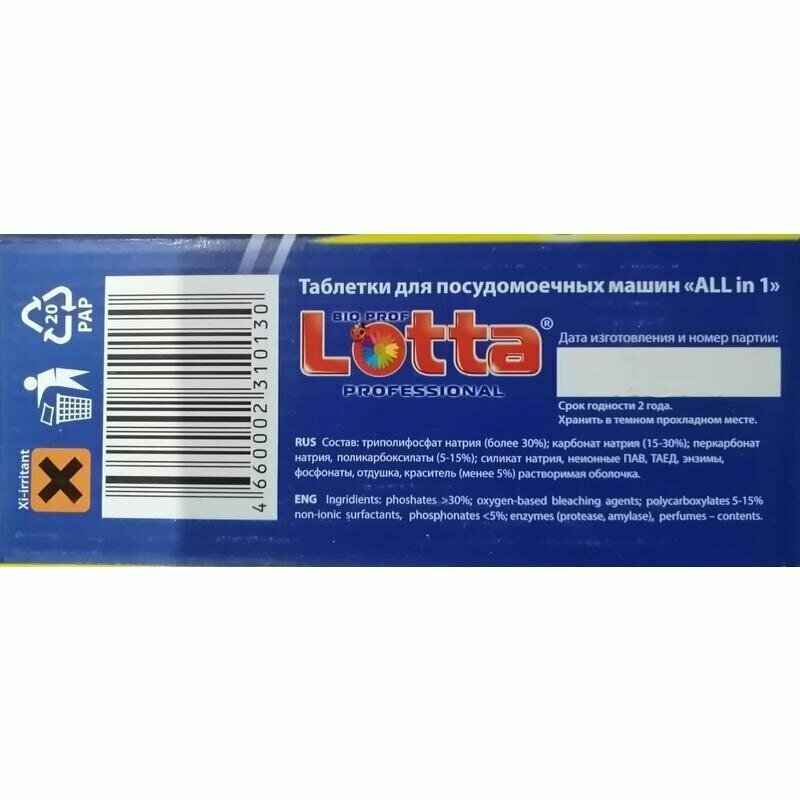 LOTTA Таблетки для ПММ Allin1 MEGA PACK растворимая 60 шт 4660002310758