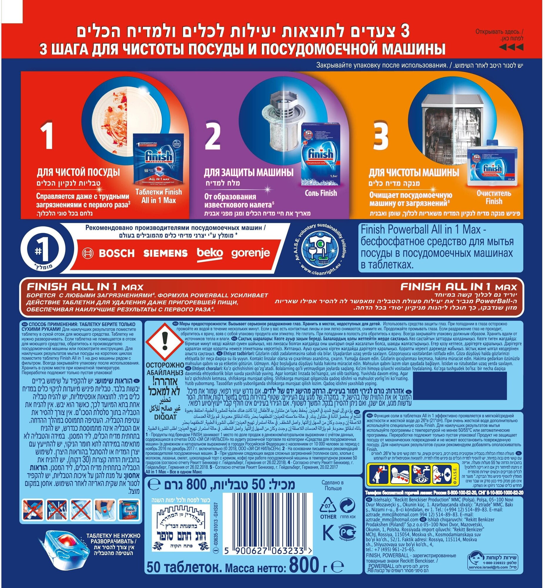 Таблетки для посудомоечной машины Finish, для мытья посуды, 50 шт