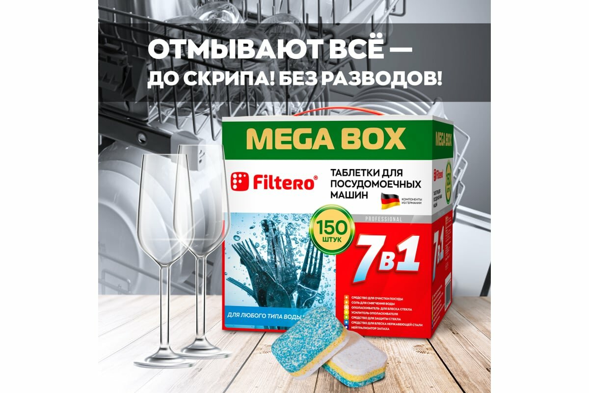 Средство для мытья посуды Filtero таблетки для ПММ "7 в 1" мегабокс (150шт), Арт. 704