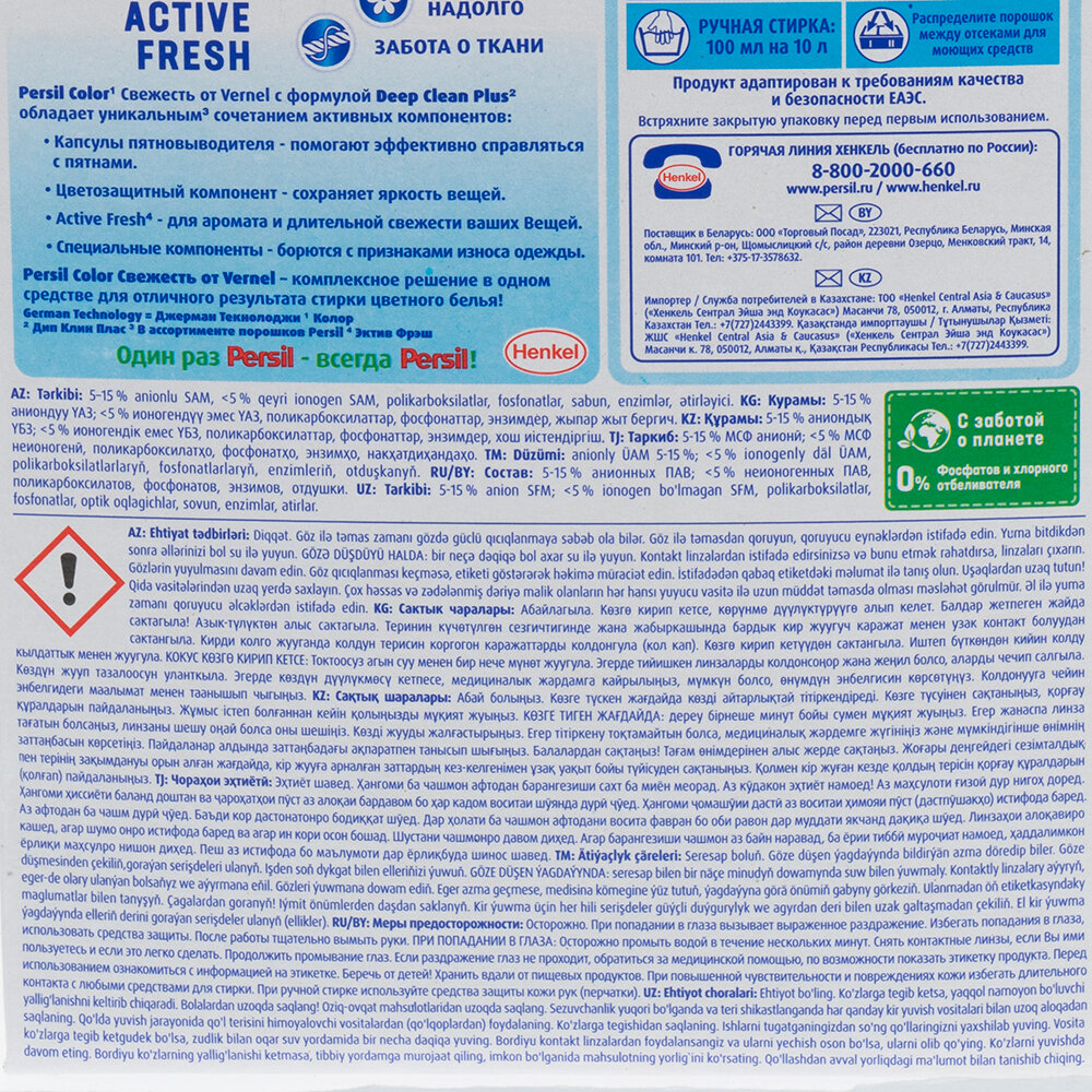Стиральный порошок автомат 3 кг персил (Персил) Color, "Свежесть от Вернель", 2466247 В комплекте: 1шт.