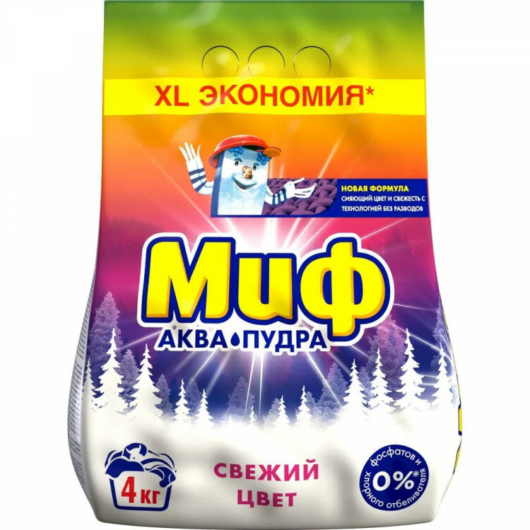 Стиральный порошок Миф Аквапудра Свежий цвет, автомат, 4 кг