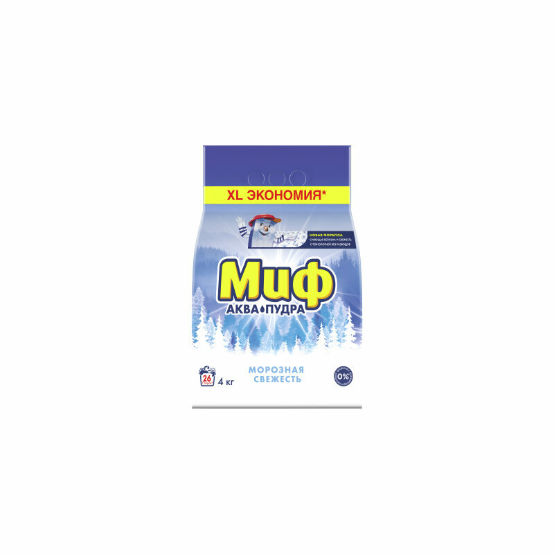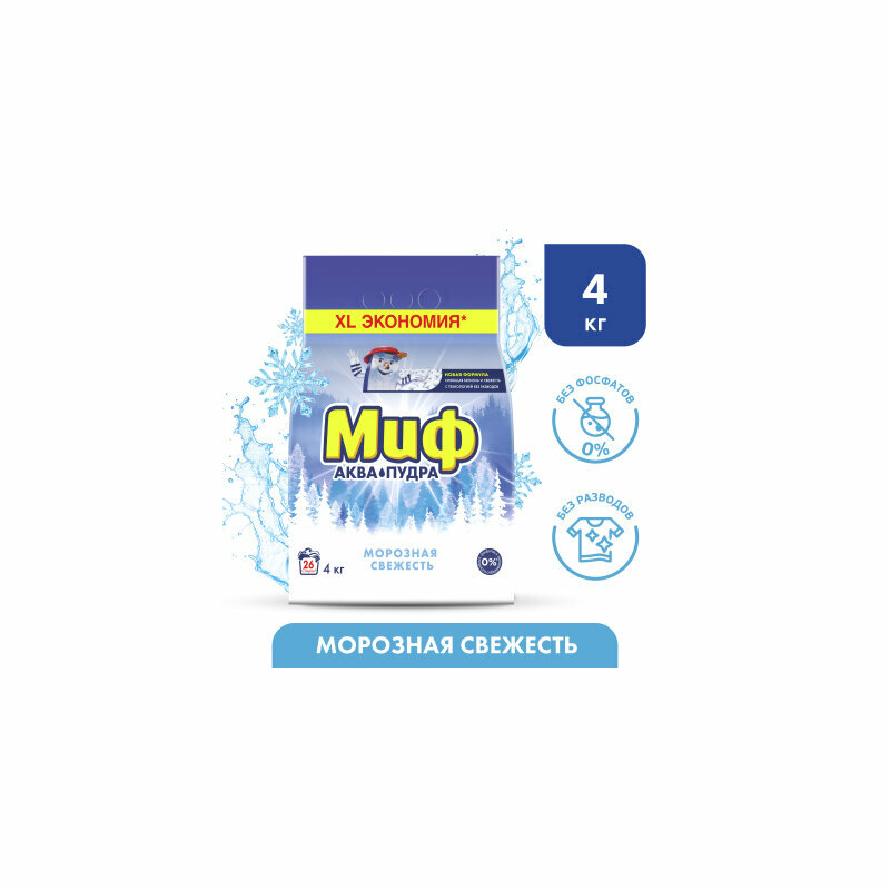 Порошок для машинной стирки Миф 3в1 Аквапудра Морозная Свежесть, 4кг