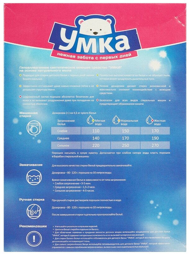 Умка стиральный порошок детский автомат гипоаллергенный для цветного белого 4 кг