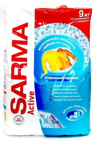 Ниже Вы можете прочитать отзывы на Стиральный порошок Sarma Актив Горная свежесть с антибактериальным эффектом 9 кг., ознакомится с подробными характеристиками, посмотреть интересные обзоры и фотографии на Стиральный порошок Sarma Актив Горная свежесть с антибактериальным эффектом 9 кг..