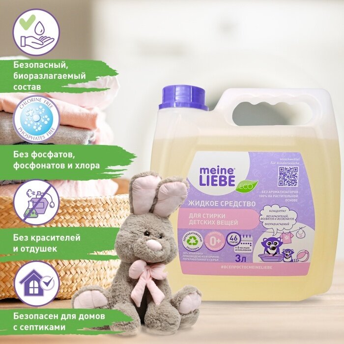 Жидкое средство для стирки детского белья MEINE LIEBE концентрат, 3 л канистра